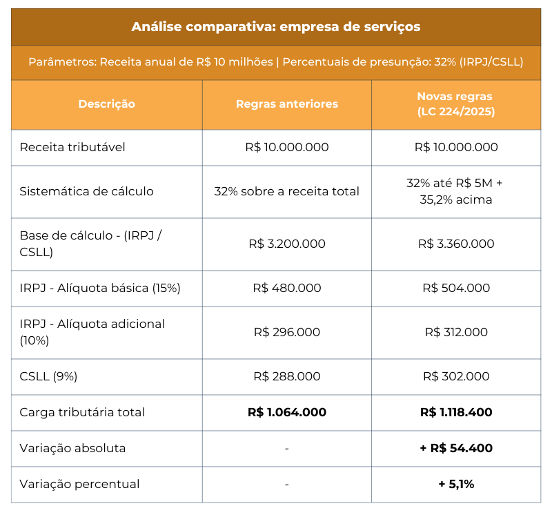 Para a parcela da receita que exceder R$ 5 milhões no ano-calendário, aplica-se um acréscimo de 10 pontos percentuais sobre os percentuais de presunção originais: